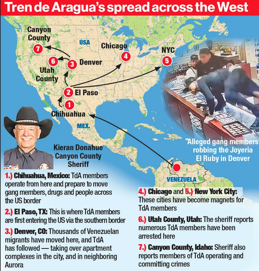 Migrants have flooded the boarder and, at this point, basically invaded parts of this country where a Venezuelan based gang called Tren De Aragua have set up camp in cities across the US, from Colorado to NYC.