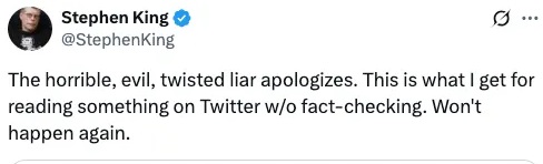 I believe Stephen King believed Charlie Kirk said that because it’s what someone else told him.