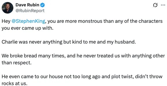 I believe Stephen King believed Charlie Kirk said that because it’s what someone else told him.