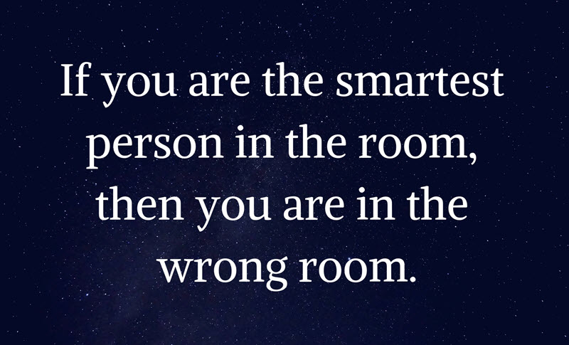 The truth is, I really do think I’m the smartest person in the room sometimes. People say I shouldn’t, but I don’t think they understand what I mean. In my 20s, I heard the saying, “If you feel like you’re the smartest person in the room, then you’re in the wrong room.”